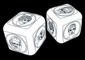 Als offene Spielanordnung zeigt sich "Kopfland". Vier Spieler, die zwar eigentlich gegeneinander antreten, wissen, daß sie dennoch nicht ohne den Beistand der anderen punkten können. In der Spiele-Box befinden sich zwei Würfel, die immer wieder neue Kombinationen von Kooperationen ergeben, je nachdem, wie sie fallen. Wer einen Pasch würfelt, begegnet sich selbst und muß eine Runde aussetzen. Das Spielbrett ist der liegende Gärtnerkopf, mit dem auch die Spiele-Box gestaltet ist. Auf ihm wandern die Figuren auf und ab und erleben den Aussichtsreichtum der Landschaft, der sie immer wieder vor neue Aufgaben stellt. Schauen und gemeinsam handeln sind die Grundregeln dieses Spiels. |