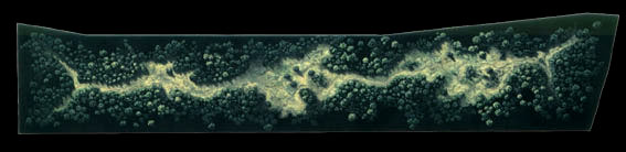 Zur gleichen Zeit zerhacken riesige Schaufeln weiterer Bagger die Asphaltdecke eines ehemaligen Parkplatzes. Von unseren Ateliers aus, deren Zusammenschluß wir "Basislager" nennen, sehen wir, wie in wenigen Wochen die Baggerführer die Baugrube vertiefen bis Flußsand sichtbar wird. Erdschichtungen treten zutage, die intensiv von Geologen untersucht werden. Sie entnehmen Bodenproben und fotografieren Details. Für einige Zeit ruhen daraufhin die Grabungen. Der nächste Schritt beginnt: Die Häuserzeile im südlichen Planungsabschnitt wird von mobilen Pressluft-Hämmern und Alien-köpfigen Baggerschaufeln attackiert, bis auch das widerstandsfähigste Beton-Skelett in Trümmer fällt. Ökologisch bedenkliches Material scheint in einem der Keller gefunden worden zu sein. Tagelang jedenfalls saugen sie etwas aus den Trümmerhaufen durch dicke Schläuche in das Innere von Tanklastern.