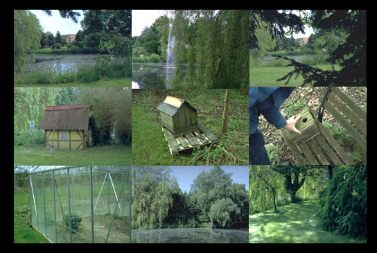 Das "Falster Versuchsgelände" liegt an einer breiten, neu angelegten Landstraße auf einer sanften Erhebung. Es heißt, hier sei der höchste Punkt von Falster, 35 Meter über dem Meeresspiegel. Seiner Zufahrt ist eine große, baumbestandene Wiese vorgelagert. Die Form des Geländes ergibt fast ein Trapez, das allseitig von einem hohen Flechtzaun umgeben ist. Direkt an diesen Zaun ist eine 3 bis 4 Meter hohe, dicht gewachsene Hecke gepflanzt, die das gesamte Areal vor Wind und neugierigen Blicken von Aussen abschirmt. Aber auch von Innen verleiht diese Hecke dem Areal den Eindruck eines abgeschlossenen, von Ausseneinflüssen unberührten Ortes. Diese Abgeschlossenheit erlaubt es, das Grundstück wie ein "Garten-Labor" zu begreifen und hier Eingriffe vorzunehmen, die in einer offenen Situation ganz anders ausfallen würden.