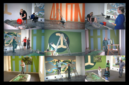 Das abweisend Randstädtische dieser Schnittstelle bei direkter Nachbarschaft zur Innenstadt entpuppt sich für uns als das Abbild des Verständigungsgebahrens zwischen den beiden voneinander abgewandten Parteien. Anstelle von ergebnisorientierten städtebaulichen Planungen mit ein bißchen Kunst am Bau verlagert die Projektgruppe ihr vorläufiges Lösungsangebot auf die eher prozesshaft ausgerichtete Einführung einer Plattform zur Erneuerung der Kommunikation zwischen Stadt und Werk. Diese Plattform nennt die Projektgruppe "Akademie". Nach den Regeln eines vorher besiegelten Gründungsvertrags wird die "Akademie" im Herbst 2000 in der Galerie der Stadt Sindelfingen ins Leben gerufen. Alle Beteiligten - die Künstler (Bittermann & Duka, Isa Melsheimer), die Architekten (b&k+, Anne-Julchen Bernhardt), ein Komponist (Christopher Dell) und Vertreter der Stadt - bespielen zunächst nach heterogenen Vorgaben die Ausstellungsräume der Galerie. Die Gesamtheit aller Räume wird umgeformt von reinen Kunstausstellungsräumen hin zu einem vielgestaltigen Forum für alle Arten von Kommunikations-und Werkstattprozessen bis hin zu städteplanerischen Veranstaltungen, die hierher verlegt werden, um das Ambiente der "Akademie" zu nutzen. Für uns stellt sich unter anderem die Aufgabe, zwei Räume mit Arbeiten aus "Der Dritten Kammer" auszustatten und mit diesen "autonomen" Arbeiten den künstlerischen Part vorzustellen. Zusammen mit Isa Melsheimer, die mit ihrer "Chaiselongue" ein Liegemöbel mit eingebautem Springbrunnen beisteuert, inszenieren wir den "Hain" als eine erste Ausgangssituation für die kommenden Prozesse in der "Akademie". |