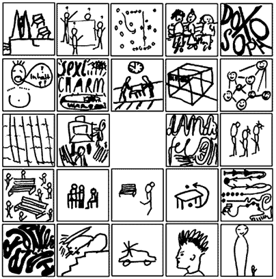 | Peter Arlt/Bittermann & Duka/Ifau/ TARNEN & TÄUSCHEN - Operative Analyse/Getarnte Aktion/Angetaeuschte Bildbilanz Beitrag zum Workshop "Politische Landschaft" im Museum für Angewandte Kunst in Köln vom 22.-29. 9. 2000 Angetäuschte Bildbilanz (Bittermann & Duka) ... Die Grenze zwischen Kunst und Leben aufzulösen, ist einer der stärksten Impulse, die seit einiger Zeit das Gesicht der Kunstszene prägen. Und doch ist der Kunstkontext immer noch das alles stützende Rückgrat, das die sich ans Leben angleichende Kunst im Zustand der "Tarnung" hält. Die Malerei allerdings gilt als statisches Medium, dessen Fähigkeit, soziale Dynamiken oder politische Handlungen sichtbar werden zu lassen, begrenzt erscheint. Die Möglichkeit, diesen Widerspruch innerhalb der Malerei in einer besonderen Form zu bearbeiten, bietet sich im Kontext des Workshops "Politische Landschaft" über die Einführung der Achse "Aktion - Darstellung". Auf ihr läßt sich das Spannungsfeld zwischen "politischem Handeln" und dem Gegenwärtigmachen von Erfahrenem, Konstruiertem und Gefundenem in der Malerei ausloten. Auf dieser Achse bildet sich ein Spielfeld, auf dem der Trick des "Antäuschens" zur Metapher für einen spielerischen Wechsel zwischen Ortsbegehungen, sozialen Begegnungen und malereiimmanenten Entscheidungen wird. In der letzten Phase des Workshops entstand nun ein großes Gemeinschaftsbild, das die Ergebnisse der "Operativen Analyse" und der "Getarnten Aktion" dem malerischen Prozess anverwandelte. Ausgangspunkt dieses mehrteiligen Tableaus war die spielerische Entwicklung einer Zeichensprache, die sich ebenfalls aus einem gemeinschaftlichen Bildfindungsprozess ergab. Die Methode dieser Bildfindung basierte auf einem altbekannten, simplen Trick, um kreative Potentiale anzuzapfen: der automatischen Zeichnung. In Zweiergruppen aufgeteilt war jeder Teilnehmer aufgefordert, einmal die Geschichte seiner Wahrnehmung der "Getarnten Aktion" zu erzählen und einmal die Geschichte des anderen schnell und ohne auf Stil und Form zu achten aufzuzeichnen. Die Mittel waren ebenso simpel wie die Methode, nur Notizzettel und Marker waren zur Hand. Aus einer Unzahl von Zetteln wurden von allen Beteiligten die vierundzwanzig beliebte?sten Zeichen ausgewählt. Projiziert und vergrößert mit schwarzer Farbe auf Leinwände kopiert, ergab sich aus dieser "Schattensprache" innerhalb kurzer Zeit das angestrebte vielteilige Gemeinschaftsbild. Angetäuscht wurde also in mehrfachen Spielwechseln und die Eindeutigkeit einer Urheberschaft ist keineswegs mehr auszumachen. Das Abschreiten der Achse "Aktion - Darstellung" erzeugte in diesem Zusammenhang eine bildnerische Lösung, die ihren zunächst implizierten Werkcharakter verlor, da dieses Werk niemandem zugeschrieben werden kann und damit anonym wurde. Dem Prozesshaften seiner Entstehung muß somit ein stärkeres Gewicht zugewiesen werden als dem realen Tableau an der Wand des Museums. Im Kontext eines weiter gefaßten malereiimmanenten Denkansatzes führt uns diese bildnerische Lösung daher zu der Erkenntnis, daß trashige Spontanmethoden nicht nur anonymer Ausdruck der Dokumentation einer "Getarnten Aktion" sein können, die u.a. die Einführung eines "dritten Tempos" in den "repolitisierten Zwischenraum" - den sogenannten "slow space" - thematisiert. Diese Methoden können vielmehr zukünftig auch als neue Werkzeuge auf andere Orte und Situationen angewendet werden, die nicht nur aneignend, sondern auch beobachtend wahrgenommen werden und deren Darstellung letztendlich den "slow space" in doppelter Weise reflektiert: zum einen den Ort selbst als einen "Ort in der Schwebe" und zum anderen die Malerei als den grundsätzlichen und eigentlichen "Ort in der Schwebe", der immer schon ein "slow space" war. |