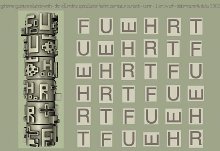 Uns interessiert der Garten sowohl mit seinen darstellungstechnischen Implikationen als auch mit seinen handlunsgorientierten Optionen. Immer schreiten wir Wege ab, die auf Achsen verlaufen, deren weitauseinanderliegende Enden wir versuchen, miteinander in Verbindung zu setzen: vom künstlerischen Werk zur prozesshaften Entwicklung gartenbezogener Projekte, vom autonomen Bildbegriff zur Neudefinition verschiedenster Bildfunktionen (als Gartenentwurf oder als Werkzeug des Gärtners), von rein fiktiven Erfindungen gärtnerischen Geschehens hin zu Realisierungen auf wirklichem Gartenboden. Darstellen von und Handeln mit Pflanzen bedeutet für uns keinen ideologischen Widerspruch, den es zu überwinden gälte. Das Denken im Garten setzt einen konzeptuellen künstlerischen Ansatz voraus, dessen ästhetische Implikationen für uns aber nicht den Verzicht auf ausgeprägte retinale Qualitäten bedeuten. Das Bild ist das Modell für den Garten als "Ort der Handlung". |